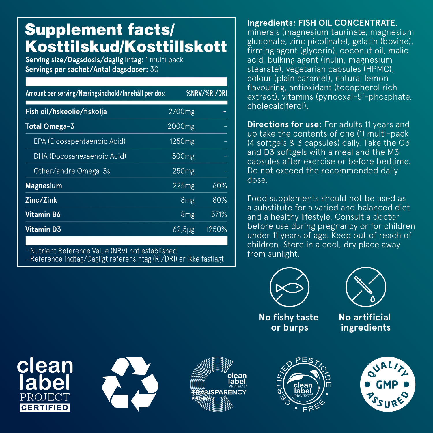 The raw fish oil in Puori O3 is sourced from wild caught anchovies in the Pacific Ocean sustainable caught and certified by FOS (Friend of the sea).